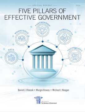 The IBM Center for The Business of Government has spent more than two decades informing leaders about effective practices for meeting these challenges, by grounding public-sector innovation in evidence, research, and real-world experience. Five Pillars of Effective Government advances that work by identifying five areas where meaningful progress can have the greatest impact—areas where the right ideas, the right tools, and the right leader-ship can strengthen the capacity of government to serve the nation.